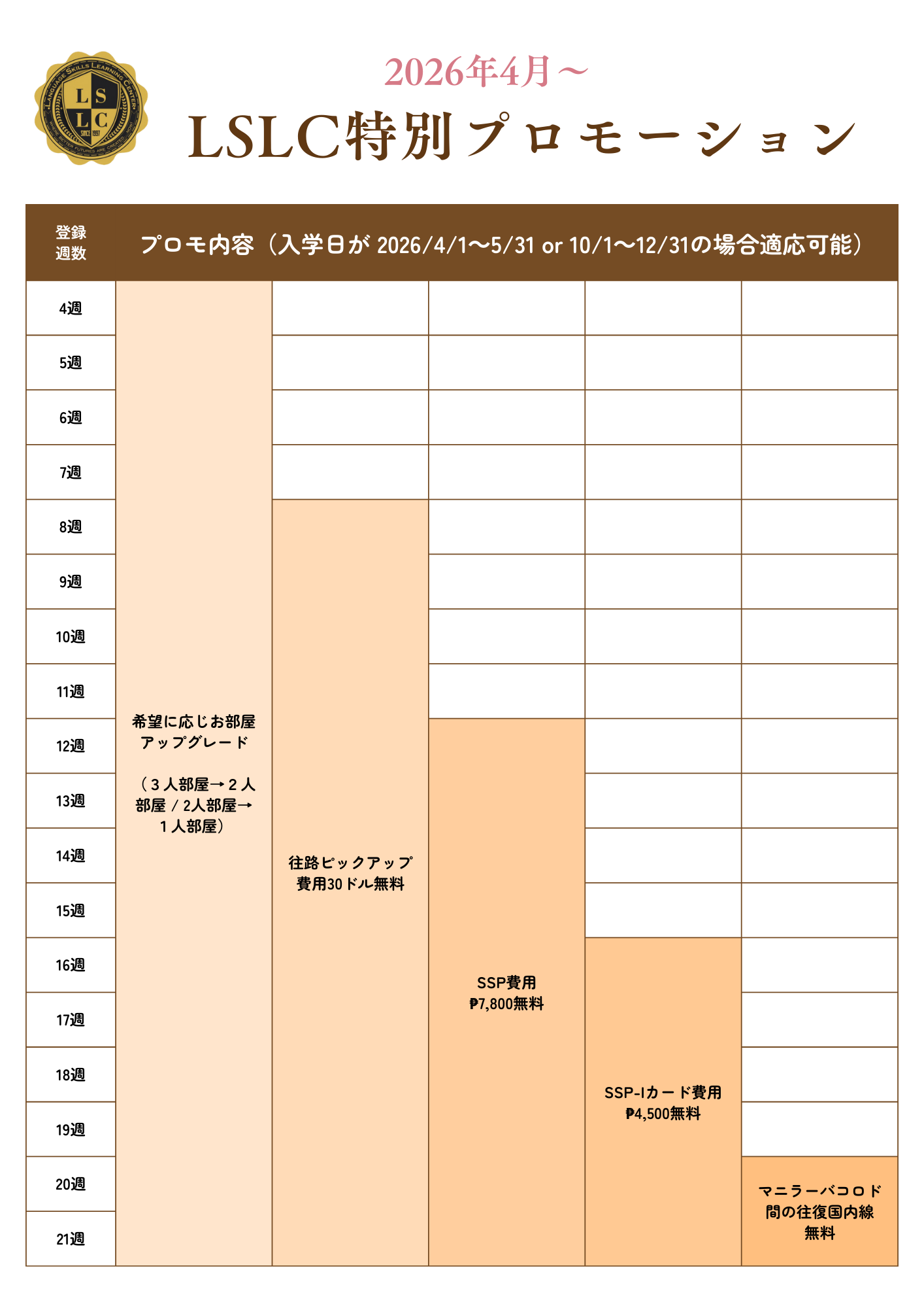 この度LSLCでは、2026年4月以降にフィリピン留学を予定している方を対象に、キャンペーンを実施いたします。